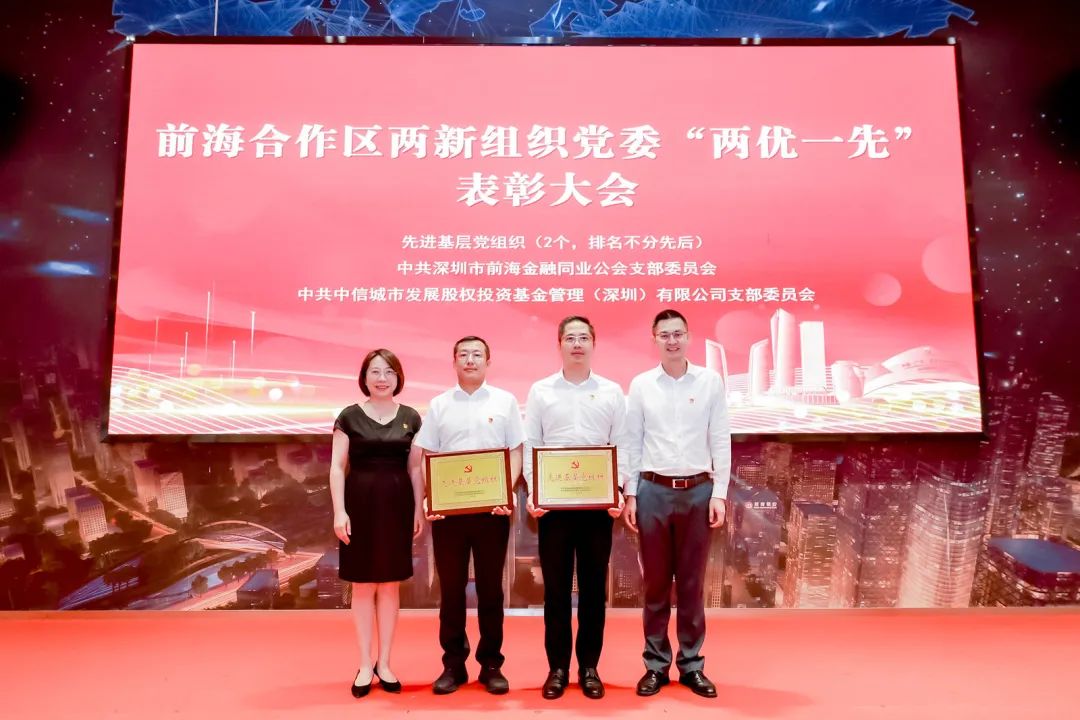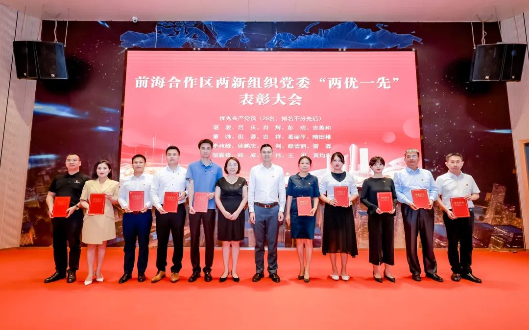 表彰大会在庄严的国歌声中拉开帷幕。前海合作区两新组织党委副书记邹萍宣读表彰决定。前海合作区两新组织党委委员为受表彰的20名优秀共产党员、4名优秀党务工作者、2个先进基层党组织颁发荣誉证书并合影。