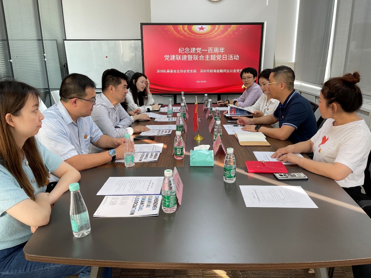 为纪念建党一百周年,进一步加强党员对党史的学习,增强基层党建的凝聚力,增进友好协会之间的互动性,深圳市前海金融同业公会党支部联合深圳私募基金业协会党支部于4月13日下午组织全体党员和积极分子开展党建联建暨联合主题党日活动。