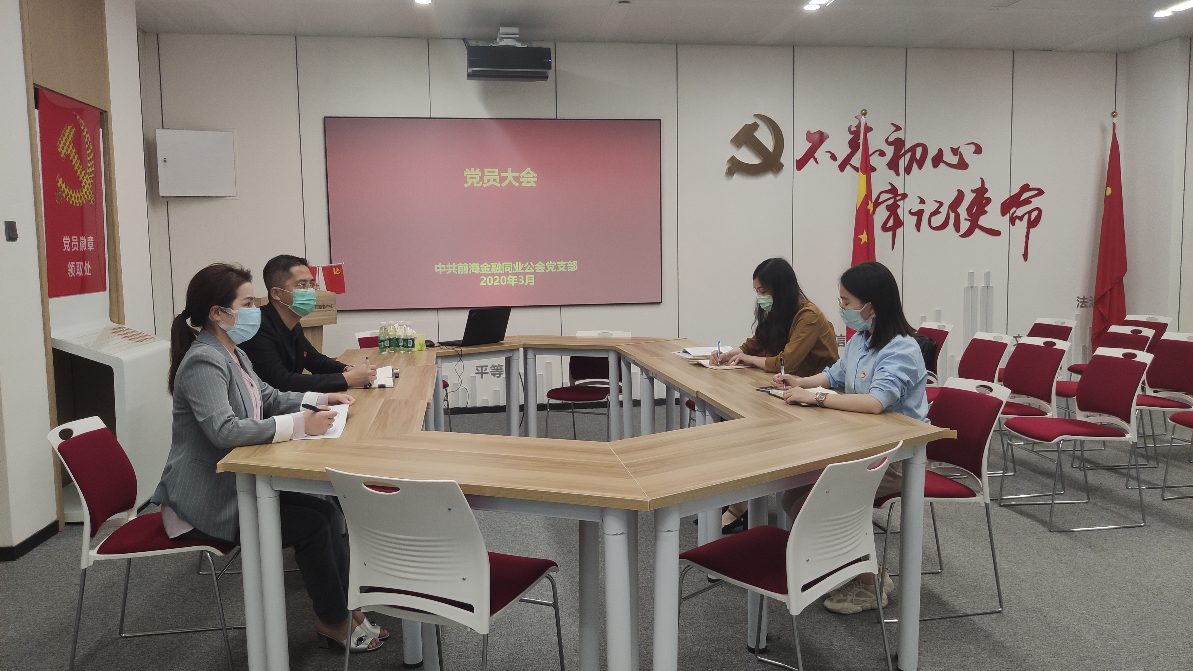 3月24号,前海金融同业公会党支部召开党员大会,会议由雷振锋同志主持。会议认真学习了习近平总书记在中共中央政治局常务委员会会议上关于疫情防控工作的讲话精神、在北京考察新冠肺炎防控科研攻关工作时的讲话精神、在湖北省考察新冠肺炎疫情防控工作时的讲话精神。