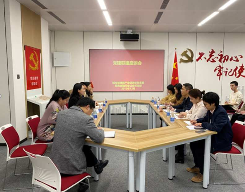 12月20日下午,前海管理局产业促进处党支部与深圳市前海金融同业公会(下称“同业公会”)党支部在前海深港基金小镇党群服务中心开展了党建联建座谈会。