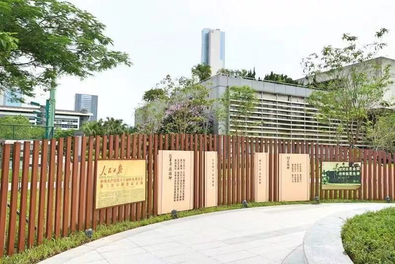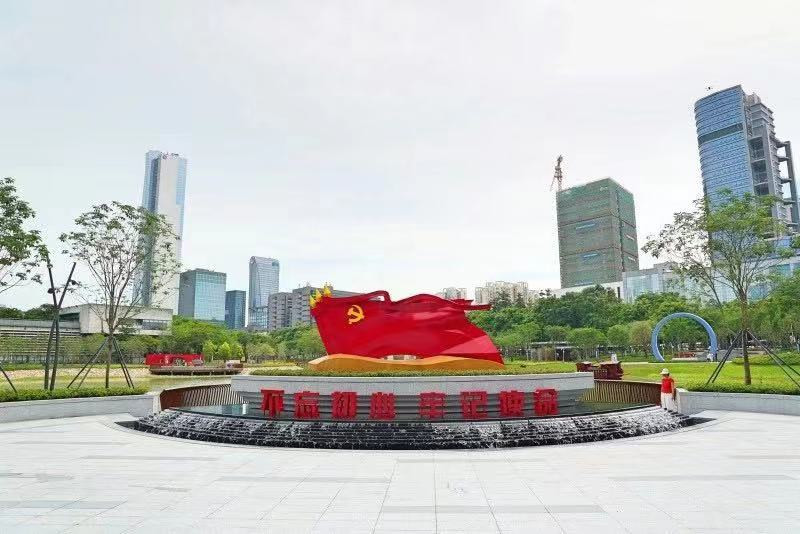 据介绍,南山党建公园是深圳首个党建主题公园,以“红色印记”为设计主题,以党的各时期精神为脉络进行设计,通过各时期党的精神及传承来表达党的成长历史,深挖其内涵使各时期的精神内涵与时代相结合,成为党员教育的又一新阵地。