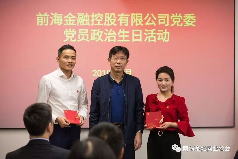 启用仪式结束后,前海金控在党群服务中心举行了第一场党的活动,为第二季度入党的党员集体过“政治生日”,何子军同志为党员代表颁发了“政治生日卡”。前海金融同业公会、中国工商银行股份有限公司前海分行、中国邮政储蓄银行股份有限公司前海分行、广发证券股份有限公司前海证券营业部及前海深港基金小镇发展有限公司等前海金融机构党组织负责人出席活动。
