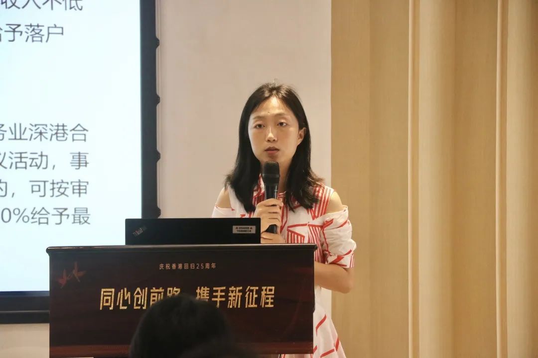 深圳市人力资源和社会保障局谭艳副处长讲针对港澳居民在深学习、就业、创业、生活等4个方面进行宣讲,包括《关于推动港澳青年创新创业基地高质量发展实施意见》、《支持港澳青年在粤港澳大湾区就业创业的实施细则》等相关政策。