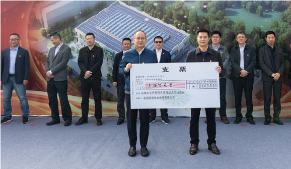 仪式上,前海各爱心企业向侨区交接了捐款支票。同业公会创会会长、世纪证券董事长李强作为代表发言,王锦侠宣布项目正式开工。