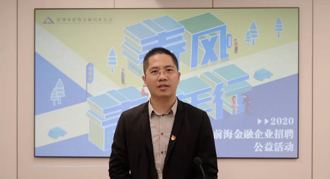 为贯彻落实国务院关于强化稳就业举措的实施意见,进一步拓宽高校毕业生就业渠道,切实解决应届毕业生就业困难,6月10日上午,由深圳市前海地方金融监督管理局指导、深圳市前海金融同业公会(以下简称“同业公会”)发起的“2020春风青年行——前海金融企业招聘系列活动”在前海深港基金小镇正式启动,本次活动采取线上直播形式,来自政府机构、高校及企业等代表参加。