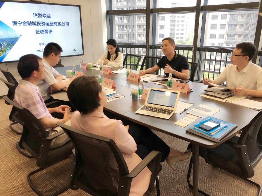 5月28日,南宁金融城投资运营有限公司副总经理何汉艺,招商服务中心总监陆雅琴,招商服务中心副经理盘飞莅临同业公会考察调研。