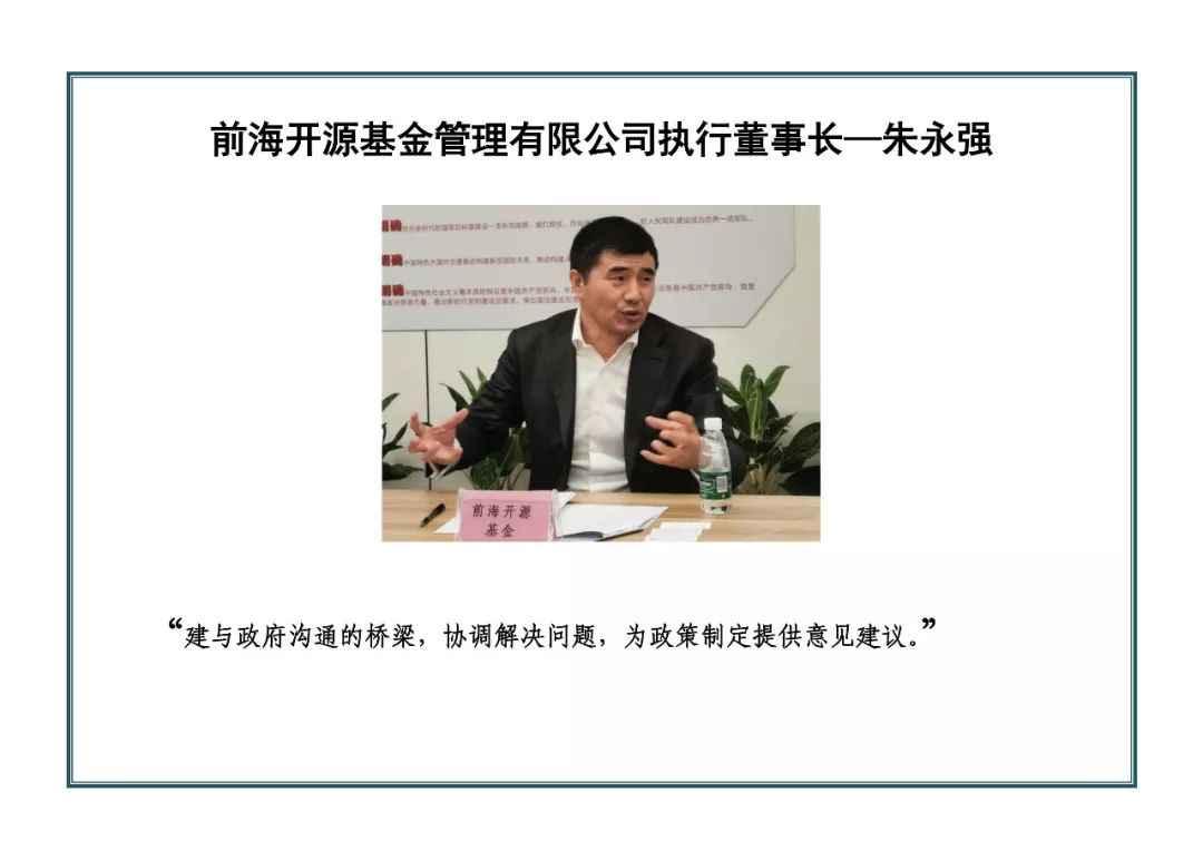 座谈会还就同业公会成立专家委员会事项向与会会员单位收集意见建议。朱永强表示,前海开源将尽力支持专家委员会的筹建,希望公会搭建与政府沟通的桥梁,协调解决问题,为政策制定提供意见建议。平安银行前海分行副行长谢杰鹏表示,前海的发展前景是很好的,当下首先要解决的是衣食住行的问题,其次是教育、医疗等。他建议,同业公会专家委员会无论形式如何,都应求落地、见实效,挑可操作性强、现实、接地气的课题进行研究。