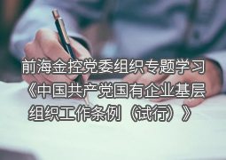 近日,《中国共产党国有企业基层组织工作条例(试行)》(以下简称《条例》)印发实施,前海金控党委第一时间召开专题学习会议,组织进行专题学习。