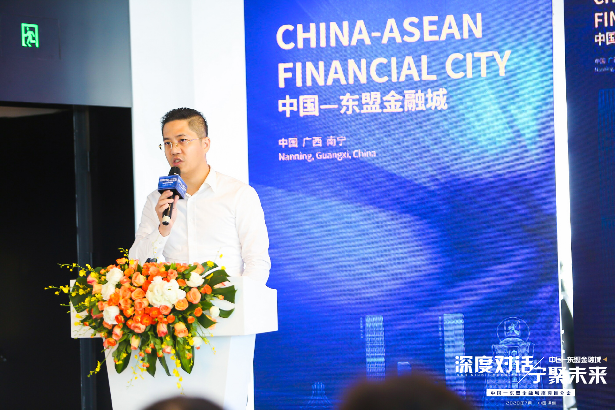 为加快构建现代金融生态圈,推动中国 - 东盟金融城向全国知名的金融集聚区迈进,7 月 24 日上午,以"深度对话 宁聚未来"为主题的中国 - 东盟金融城招商推介会在深圳市卓越前海壹号云顶展示厅举行。南宁市政府党组成员陈超,深圳市前海地方金融监督管理局副局长张平,南宁金融集团董事长、总经理关俊以及深圳市前海金融同业公会秘书长雷振锋出席活动并致辞。