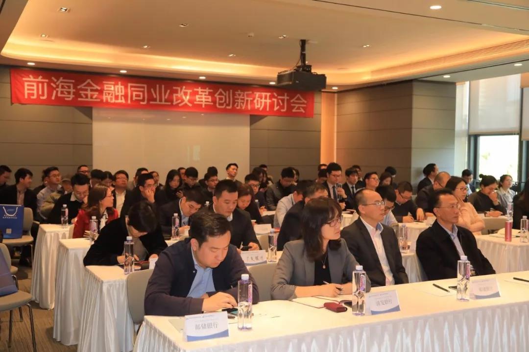 12月11日,由深圳市前海金融同业公会(以下简称“前海金融同业公会”)联合中国邮政储蓄银行前海分行(以下简称“邮储银行前海分行”)共同举办的“2018前海金融同业改革创新研讨会”在前海深港基金小镇举行。本次研讨会邀请前海管理局金融创新处相关负责人以及市场经验丰富的资深专家,以交易项目为主体,以监管引导为保障,共同探讨前海蛇口自贸片区金融服务实体经济产品的未来发展方向。来自工商银行、农业银行、浦发银行、上海银行、玉山银行、前海再保险、国信(香港)、汇丰前海证券、中信证券、广发证券、东北证券、一创证券、兴业证券、招联消费金融、HKQAA等50多家金融机构负责人,行业协会以及高端服务业代表等80余人参加研讨会。