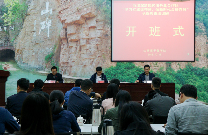 在深圳改革开放40周年、前海合作区设立8周年之际,为探索“以共建促党建,以共建促服务,以共建促发展”的党建新路径,让党员干部实地感受“自力更生、艰苦创业、团结协作、无私奉献”的红旗渠精神,增强党员干部党性修养,10月15日,前海金控会同前海金融同业公会组织深圳金融监管机构、前海管理局以及同业公会会员单位党员代表在红旗渠干部学院开展“学习红旗渠精神 做新时代合格党员”专题党性教育培训。