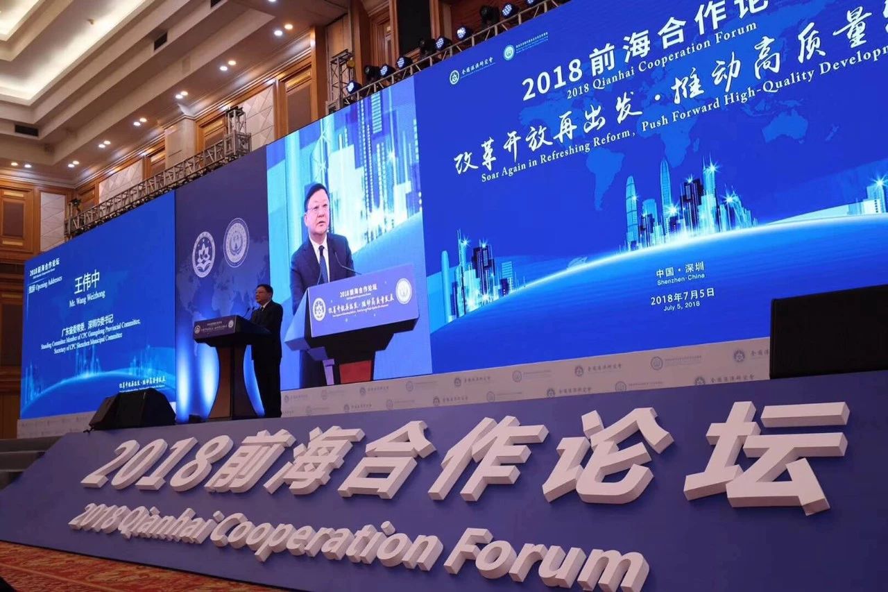7月5日,由全国港澳研究会、前海管理局联合主办,前海金控等承办,前海金融同业公会等协办的“2018前海合作论坛”在深圳举行。论坛围绕“改革开放再出发,推动高质量发展”这一主题,探讨在中国特色社会主义新时代,如何把握全面深化改革开放的新契机,进一步深化深港澳合作,推动高质量发展,促进港澳融入国家发展大局。