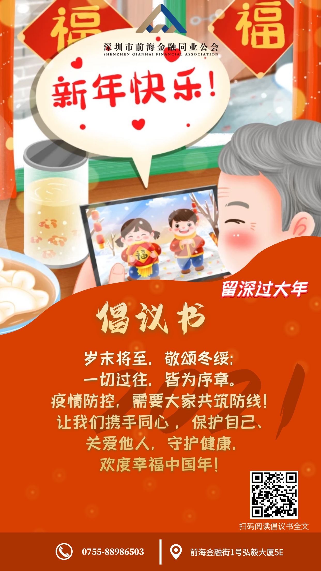 春节将至,年味渐浓。遵照深圳市新冠肺炎疫情防控工作的相关通知及要求,深圳市前海金融同业公会(下称“同业公会”)现向大家倡议如下: