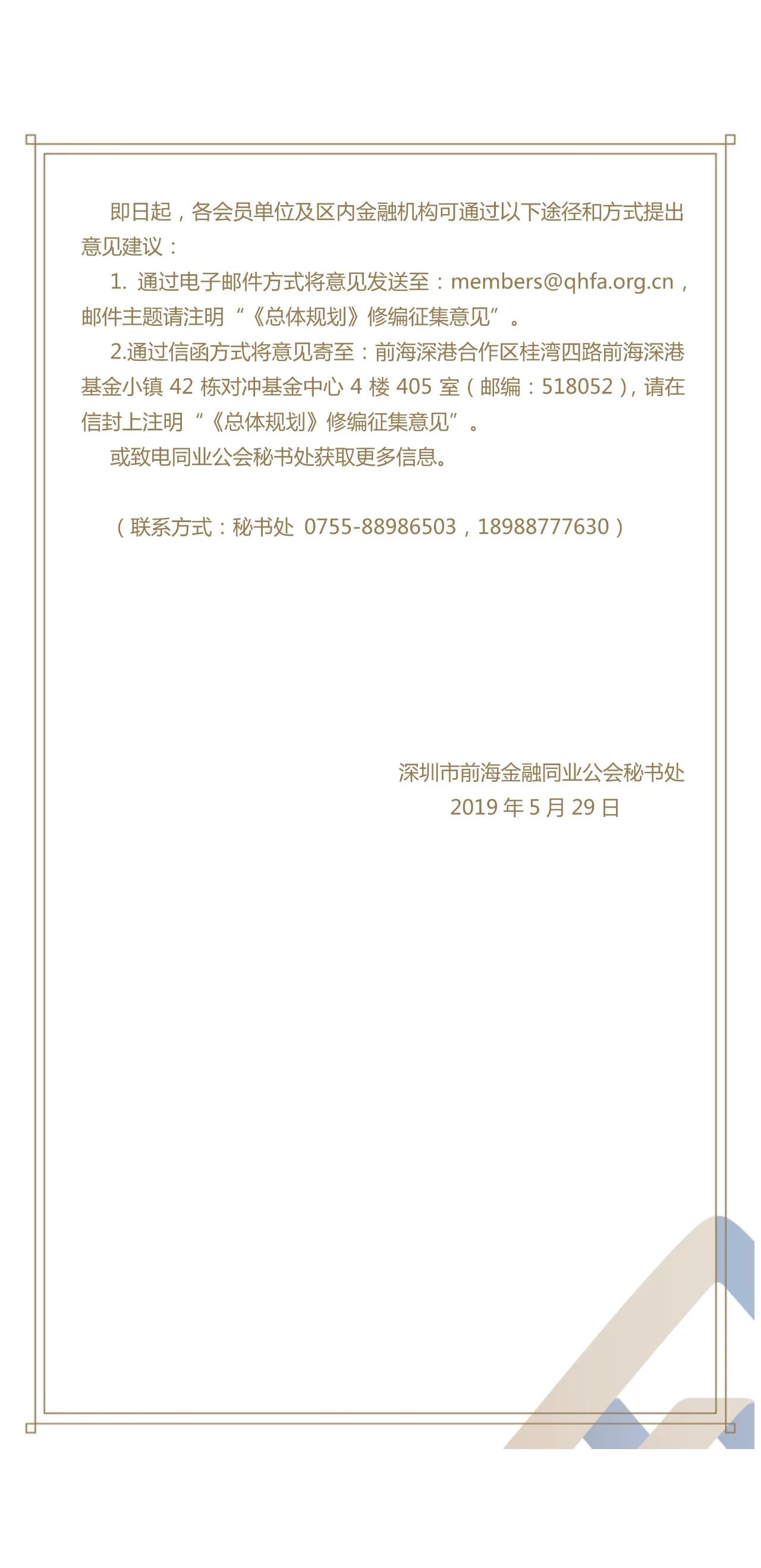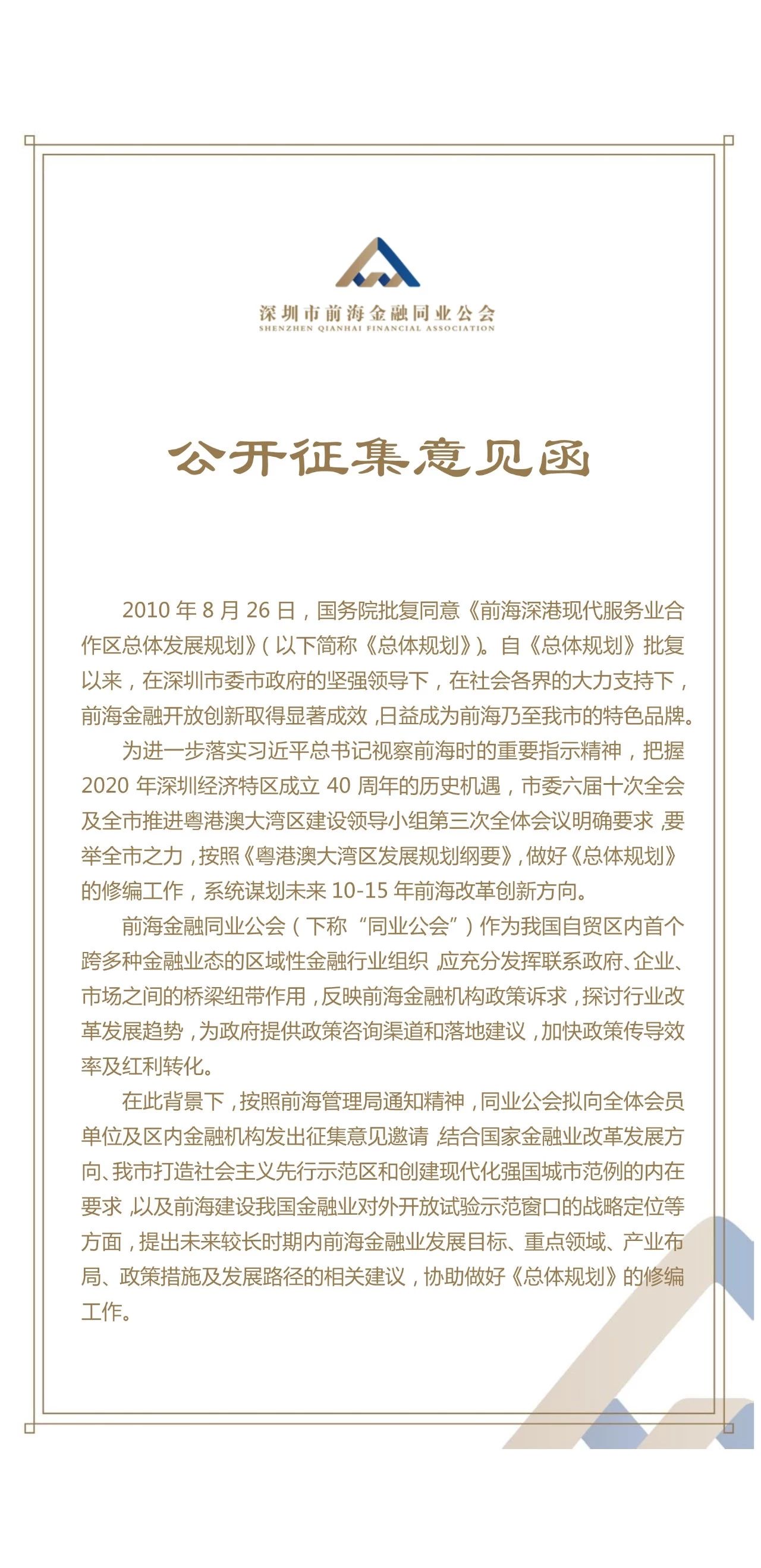 同业公会就《前海合作区总体发展规划》修编工作公开征集意见