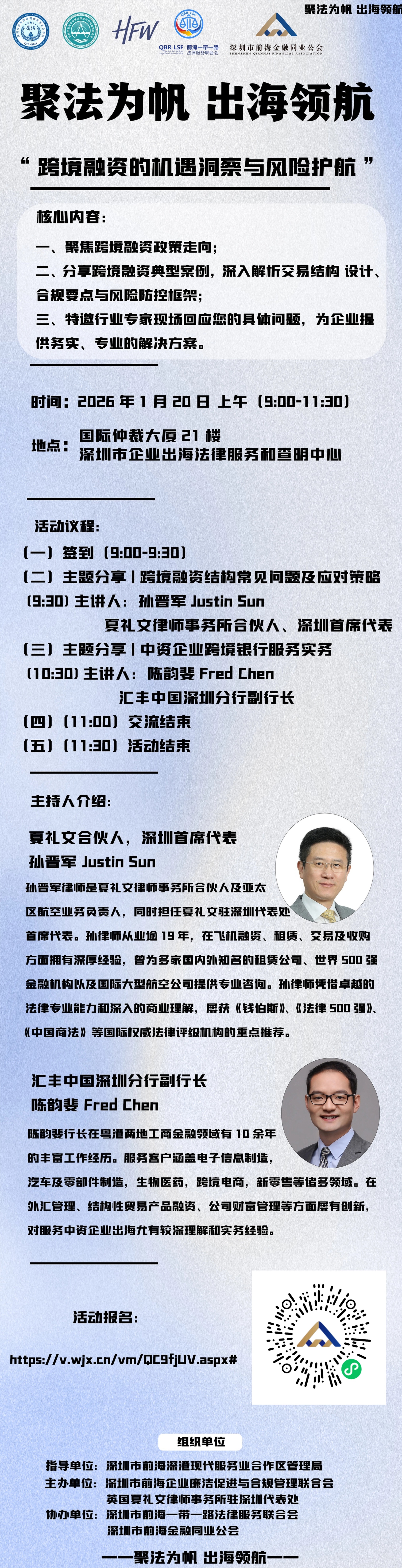 活动地址:国际仲裁大厦21楼(深圳市企业出海法律服务和查明中心)