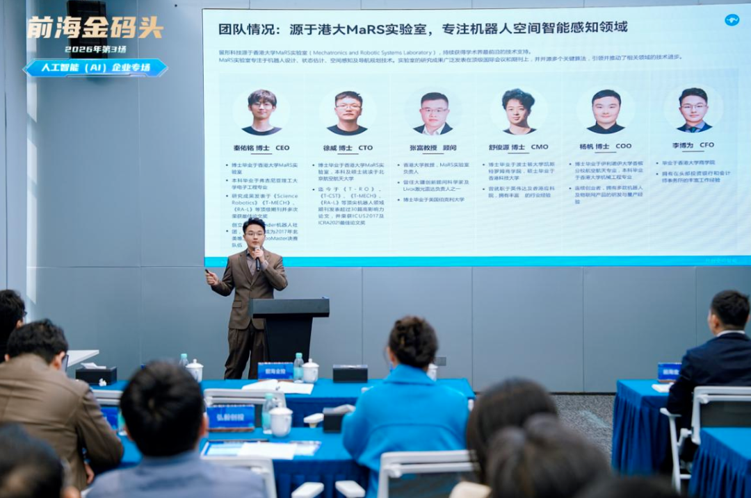 为深入贯彻落实2026年全省高质量发展大会精神,聚焦“推动制造业与服务业协同发展”的战略部署,前海金码头系列活动——人工智能企业专场路演于3月11日在前海5号楼成功举行。活动由前海金融发展局、前海管理局科技创新处主办,前海金融同业公会、前海金融控股有限公司、前海梦工场运营公司承办,吸引了深创投、国新基金、戈壁创投等20余家头部机构携千亿资本坐镇,以“资金链”贯通“创新链、产业链、人才链”,为香港青年科创企业注入强劲的金融动能。